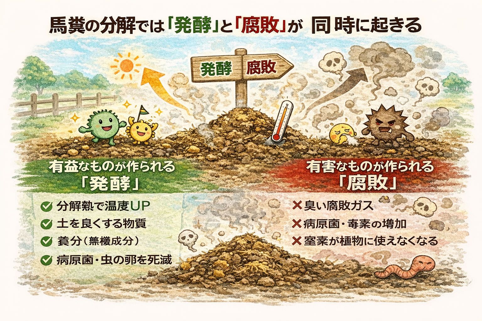 「生の馬糞を土に交ぜてしまうのがなぜよくないのか」
