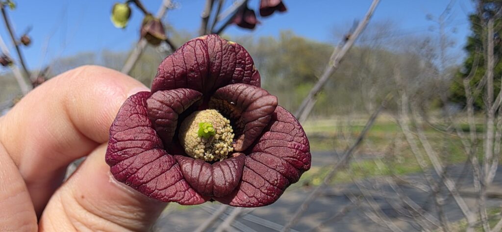 ポポーは自然下ではハエなどの昆虫が受粉を担うため、海外では呼び寄せる目的で腐敗した肉を吊るす…なんて話もありますが、