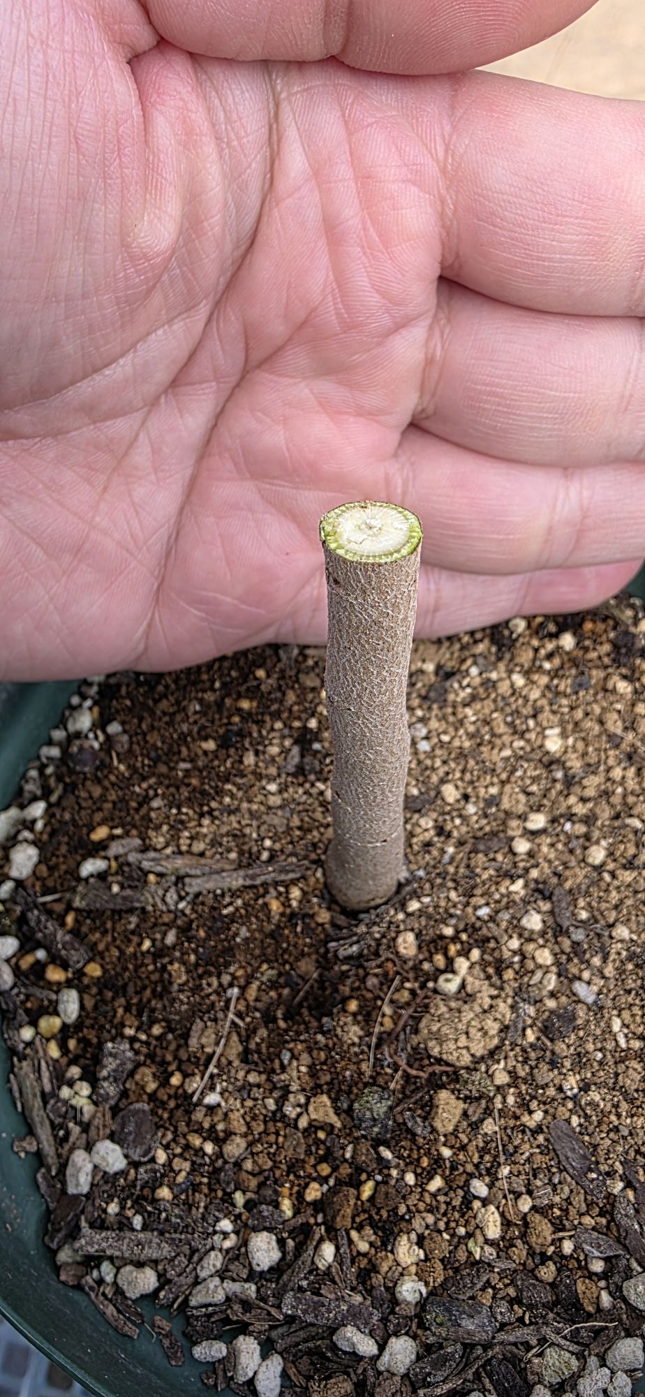 人の手術だとガーゼや包帯で固定してあげている状態ですね。接ぎ木においてはカルスと呼ばれる癒合組織(傷を塞ぐ新しい組織)ができるためには乾燥を防がないといけないため、空気が入らないように。