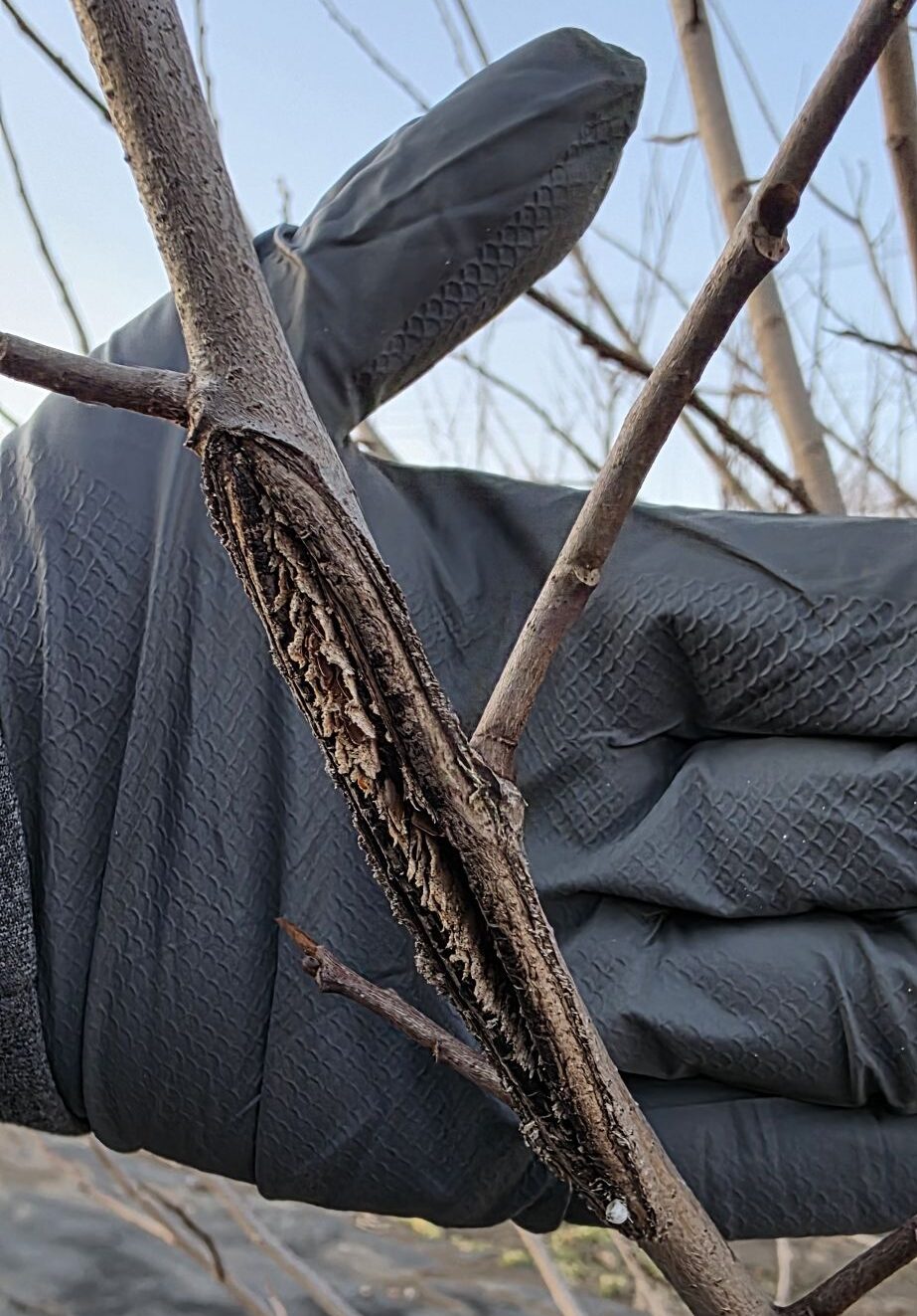 これをやられたらその枝を剪定する以外に方法はありません。例え卵だけ除去してもかじられた枝は健康には戻りません。↓